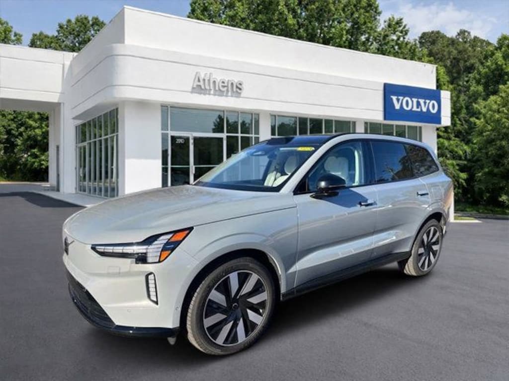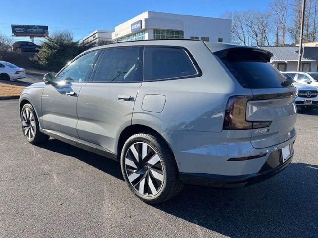 Vapour Grey Metallic 2025 Volvo EX90 Twin Motor Ultra 7-Seater AWD 1-Speed Automatic Electric Motor 14 Speakers, 3rd row seats: bucket, 4-Wheel Disc Brakes, ABS brakes, Adaptive suspension, Air Conditioning, Alloy wheels, AM/FM radio: SiriusXM, Anti-whiplash front head restraints, Auto High-beam Headlights, Auto-dimming door mirrors, Auto-dimming Rear-View mirror, Auto-leveling suspension, Automatic temperature control, Brake assist, Bumpers: body-color, Delay-off headlights, Driver door bin, Driver vanity mirror, Dual front impact airbags, Dual front side impact airbags, Electronic Stability Control, Emergency communication system: Volvo Cars App w/4 Year Subscription, Exterior Parking Camera Rear, Four wheel independent suspension, Front anti-roll bar, Front Bucket Seats, Front Center Armrest w/Storage, Front dual zone A/C, Front reading lights, Fully automatic headlights, Genuine wood console insert, Genuine wood dashboard insert, Genuine wood door panel insert, Headlight cleaning, Heads-Up Display, Heated door mirrors, Heated Front Seats, Heated front seats, Heated rear seats, Heated steering wheel, Illuminated entry, Integrated rear child seats, Key Tag, Knee airbag, Low tire pressure warning, Memory seat, Navigation System, Nordico Upholstery, Occupant sensing airbag, Outside temperature display, Overhead airbag, Overhead console, Panic alarm, Passenger door bin, Passenger vanity mirror, Power door mirrors, Power driver seat, Power Liftgate, Power passenger seat, Power steering, Power windows, Radio data system, Radio: Bose Performance Audio w/14 Speakers, Rain sensing wipers, Rear air conditioning, Rear anti-roll bar, Rear dual zone A/C, Rear fog lights, Rear reading lights, Rear seat center armrest, Rear window defroster, Rear window wiper, Security system, Speed control, Split folding rear seat, Spoiler, Steering wheel mounted audio controls, Telescoping steering wheel, Tilt steering wheel, Traction control, Trip computer, Turn signal indicator mirrors, Variably intermittent wipers, Wheels: 21" 8-Spoke Aero.